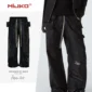 MIJKO Men's Wax Leather Coated Pants Black Casual Trousers with Multi-Pockets Double-Ring Drawstring Design ZJ108