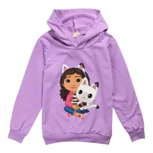 Gabby Dollhouse Girls Hoodie Long Sleeve Clothes Cartoon Character Sweatshirt Winter Kid Purple Hooded Clothing Kawaii Tops Gift