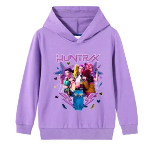 KPop Demon Hunters Children Hoodie Loose Comfortable Hoodie Cartoon Pattern Windproof Easy Warmth Clothes Children Birthday Gift