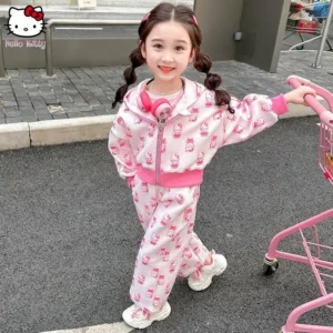 Kawaii 2Pcs Children Cartoon Anime Sports Set Hello Kitty Sanrio Kuromi Fashion Zipper Korean Hoodie Wide Legs Y2K Jacket Pants