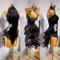 Latin Dance Costume AB Stone Female Adult Children High-End Customized Black Feather Black Pool Samba Performance Dress