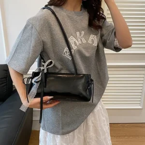 Trendy Multicolor Shoulder Bag PU Leather Bowknot Versatile Commuting Bag with Lace Ribbon Large Capacity Underarm Bag Shopping